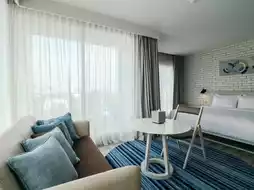 Inside the accommodation, there is a café and restaurant, fitness center, rooftop swimming pool, and everything else you need. The hotel's ambiance is beautiful and modern.