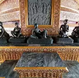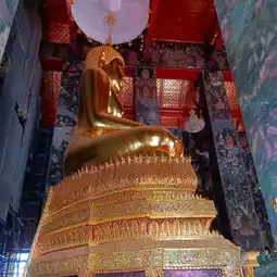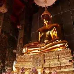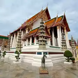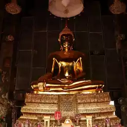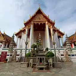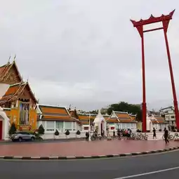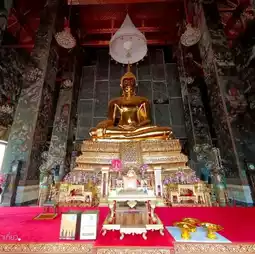 Wat Suthat is located in the inner city area of the capital city, opposite Lan Khon Muang (Bangkok City Hall). There is a prominent swing pole in front of the temple. It was built during the reign of King Rama I. It was originally named "Wat Maha Sutthawat". Later, he ordered the construction of a chapel to house "Phra Sri Sakyamuni" or "Phra To", the largest bronze Buddha statue built during the Phra Ruang dynasty of the Sukhothai era, which was invited from the royal chapel of Wat Mahathat in Sukhothai Province. However, the chapel was not completed before the end of the reign. This temple was expanded and completed during the reign of King Nangklao, Rama III, and was renamed "Wat Suthat Thepwararam Ratchaworamahawihan", which means Suthatsanakorn on Mount Sumeru, the center of the Daowadungsa heaven where Indra resides.