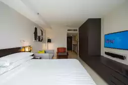 Today, I stayed in the SUPERIOR STUDIO room, which is a spacious 34 square meter room that is well-proportioned. The bed, sitting area, bathroom, and even the kitchen area with various appliances are all well designed. If you need anything else, just let the staff know. You can truly live your life here in a relaxed and stress-free way, whether it's for a short or long-term stay.