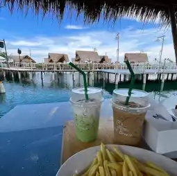 Take a deep breath in the chill Bali atmosphere of this newly opened cafe hidden in Soi Pracha Uthit 76. Let me tell you, it is full of beautiful photo spots. Not only that, it is also ready to serve delicious homemade menus such as fried shrimp, stir-fried seafood, fried sea bass with fish sauce, steamed seafood in young coconut, sour curry with shrimp and cha-om eggs, strawberry honey toast, Berry Secret, Lychee Storm, Apple Kamikaze, and Lady Girl. With all this, whether you want to invite your friends to have a lunch party or have a fun late-night meal, just pin it and come quickly. #Riverside cafe #cafe #cafe review #cafe life