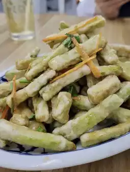 When you come here, don't forget to order the French fries with eggplant. I'm not a big fan of eggplant. When I came here, it was amazing. It was crispy on the outside, soft on the inside, and there was no eggplant smell at all. There was caramel sugar coating the eggplant, making it crispy and a little sweet.