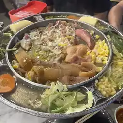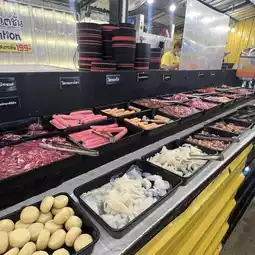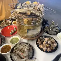 I must say that this is a buffet restaurant that brings together fresh seafood. They select quality ingredients to create an amazing seafood buffet. They have both pork pan and grilled food. Prices start at only 199 baht for pork pan lovers, but seafood is a little ++. If you add a grill, it's 99 baht. Is it worth it? It's very much worth it. Let the pictures tell the story. How much food is there? 😂 After eating, you can take a leisurely stroll at the Ram Intra expressway market. Isn't that good? ❤️❤️❤️ #Recommend delicious restaurants