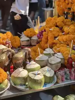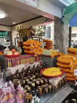 🙏🏻 When making a wish here, you can ask for what you want. If your wish comes true, bring the offerings as you told us to. People like to worship coconuts, bananas, flowers, and various garlands. They are available for sale inside. Take pictures around the area outside the walkway.