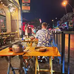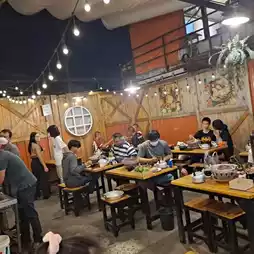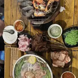 แดกยับบุฟเฟ่ - dak yub is down the alley on your right. it is by the roadside, you won’t miss it. 299฿/pax for eat all you can buffet, this suits all of us! We had a table of 6 pax, so they gave us a long row of tables with 1 bbq stove and 1 mookata pot.