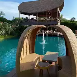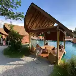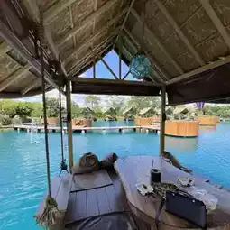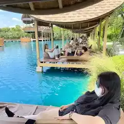 We came in the afternoon, and were lucky there was no waiting queue and even managed to get the private hut table. Floating tables do not have shade, hence they are only available after 6pm.