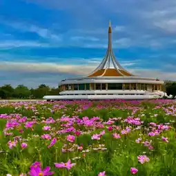 🌿Suan Luang Rama 9 is a large public park with many zones for people to visit. It is a public park where you can do many activities, such as running, walking, relaxing, or sitting and admiring the beauty of various plants. The author came during the beautiful flower festival at Suan Luang Rama 9 every year. Review on 4/12/65 If you come during this time, you will have to pay an entrance fee of 10 baht per person. Inside the park, there are beautiful plants for taking pictures. There are shops selling both food and plants. You can walk until 7:00 p.m. The disadvantage is that there are a lot of people. So, those who don't like crowds must come outside the festival. For traveling, come by private car or if you come by public transportation, take the BTS Skytrain to Udomsuk Station. Then walk to the songthaew in front of the market that says to go to Suan Luang Rama 9. The price is 8 baht. You will be able to get to Suan Luang. It's not difficult to get there.