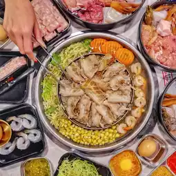 #Air-conditioned pork pan is awesome. Your head won't stink when you go home. Open until 2am. Easy to get to. Near the BTS🚝🚝 This shop is A La Carte, not buffet. Starting at 279 baht per set. As for vegetables and sauces, you can take as much as you want🐽🐽