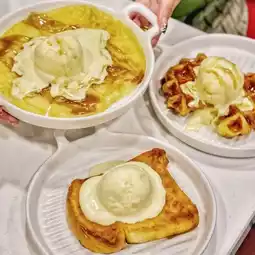 You can choose between pork and beef, whichever you prefer. I personally like pork a little bit more♥️♥️ There are 3 types of sauces to choose from. There are lime and garlic to add. The highlight is the pickled egg sauce. It's delicious, but it costs more. 12 baht per cup✨✨ There is now a new dessert menu, Croffle Brown Sugar, for you to order to finish off. It's excellent🧇🍨