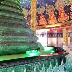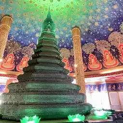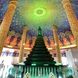 The large green glazed stupa, rounded ceiling, carefully painted Buddha statues, trees and fluorescent green background, a kind of traveling through time and space, connecting the unknown universe feeling, this is the most beautiful stupa I have ever seen, really can not miss oh!
