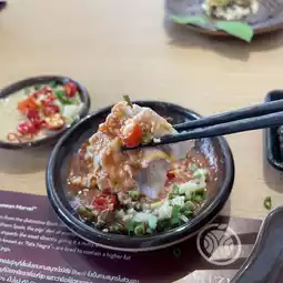 🍝Dipping sauces include ponzu, sukiyaki with soybean paste, sesame, chili, garlic (refillable)