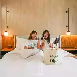 บอกเลยว่าเป็นอีกหนึ่งที่พักทำเลดีอีกหนึ่งที่เลยค่ะ ตัวอาคารก็เก๋มากโทนไม้สีน้ำตาลอ่อน ออกแบบเป็นรูปตัวยูมีสระว่ายน้ำอยู่ตรงกลาง นี่พี่ยีนส์ได้ห้อง Junior Suite with Balcony มองลงไปเห็นวิวสระว่ายน้ำคือเลิศ ภายในห้องก็จัดสรรพื้นที่ได้ลงตัวเลยค่ะ ห้องอาบน้ำแยกอ่างไว้ให้ แถมตรงกลางยังมีกระจกใสที่มองเห็นต้นไม้ที่แขวนอยู่ด้านนอกได้อีก ประหนึ่งเป็นโอเอซิสเพิ่มบรรยากาศความสดชื่นให้ห้อง 😍