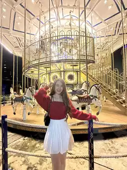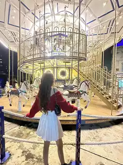 Invite you to take pictures of Bangkok, see the view along the Chao Phraya River, take pictures that feel like you're abroad. 🎠🏰🎡🌃The carousel corner...is a corner you can't miss. Taking a blurry photo is so beautiful