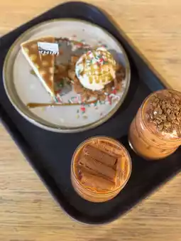 Another highlight of the shop is the use of Dripper equipment to brew coffee, allowing us to see the tea leaves and tea, which have different colors depending on each menu. The tea menu only has clear tea, which is pure tea without any mixture. There are both hot and cold options. The main ones are oolong teas such as Lishan Alpine Oolong, Tai Pei Ti Kuan Yin, Sun Moon Lake Ruby, Oriental Beauty Oolong, or beauty queen tea. 🍃