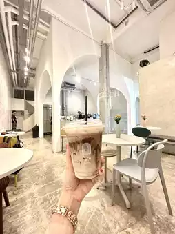A cafe with a minimalist Korean style that looks simple and cool at the same time. And also hides cuteness with various corners with colorful lights decorated throughout the building.