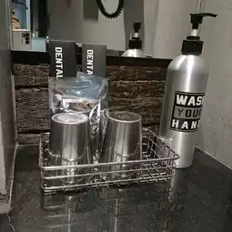 When stepping in, you will be struck by the foreign license plates used to decorate the check-in counter. The car parts used as components in various equipment look good and are usable. Inside the room, there are metal and welded steel artworks such as wall art, lamps, and pillars and beams that look like steel frames. The feeling of this room is quite cool. In addition, there are complete facilities. But there is a disadvantage: because the room walls are made of steel, they do not absorb sound at all. We can easily hear talking or the sound of the TV from the next room, which should be a big disadvantage for this hotel. I must say that it should be fixed immediately because we can hear just the sound of talking on the phone from the next room.