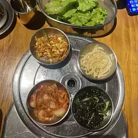 The tableware is all Korean style, with flat chopsticks, small plates, and the presentation of the dishes is also quite beautiful. Look at the meat, it's so good and has beautiful fat marbling. What should I do if I'm afraid it will burn? Don't worry, the waiter will provide friendly table service, so you can chat and eat meat without worry. Come here and just leave it to the store staff.