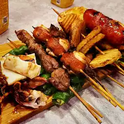 The price of skewers is around 30-40, and some seafood is more expensive. The grilled flavor will be strong but not too salty. The taste is also very good. It is a skewer stall that serves high quality and low price food. Plum wine draft beer large cups 200 each. The prices are reasonable for a skewer restaurant. You have to queue up a bit on weekdays, and it is even harder to get a seat on holidays.