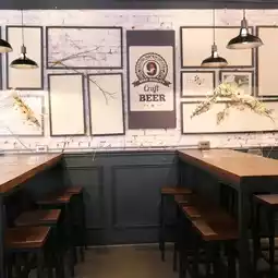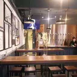 G+9 Fresh Beer Restaurant Banqiao Guoguang Branch is about 9 minutes' walk from Exit 5 of Banqiao MRT Station. The royal blue exterior has a European style, while the interior features industrial-style ceilings, chandeliers, wooden bar chairs, and white cultural walls, creating a relaxed and comfortable atmosphere. The meals are a mix of American and Taiwanese styles, with beer starting at NT$140 and fried food starting at NT$70. It is delicious and stress-free, making it a great place to dine with friends after get off work on weekdays or on weekends.
