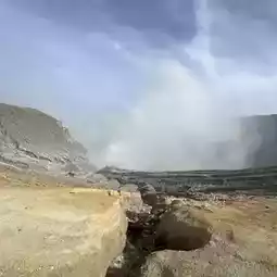 The magical Ijen Valcano Crater located in East Java Indonesia. It is a popular for its blue fire phenomenon, acidic crater lake and sulfur mining activity. The complete journey to discover this beautiful crater might take 9.7km out-and-back and can considered as quite challenging route due to the steep climbs, rocky path and slippery descent. The best time to start the hike is at 2-3 am, to catch the blue flames before sunrise.