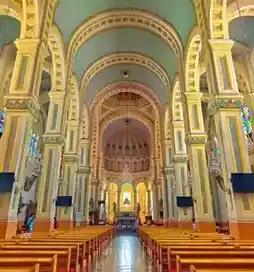 Inside the church, one feels a tranquil atmosphere. There is no clamor, only the gentle sounds of prayer and the chirping of birds. The air is filled with fragrance, transporting you to a sacred world where you find peace and divine beauty.
