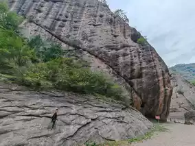 Xiaoshui River flows through the middle of the canyon. The riverbed is flat and beautiful, while the valley walls on both sides are upright and even tilted inward, making it extremely steep. The Danxia landform has distinct features, with magnificent mountain and rock walls, winding rivers, and canyons rising upright from the riverbed.