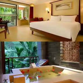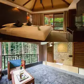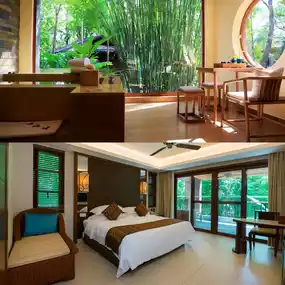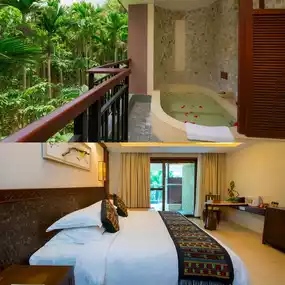🌈Soaking in hot springs♨ in Hainan winter, Qixianling Junlan is definitely the first choice for most people👣, located in Qiongzhong Qixianling's Junlan, the detached guest rooms are located in the tropical rainforest☁, open the door, take a deep breath of fresh air, or stroll👣 in the rainforest🌧, feel the negative ions given by nature.