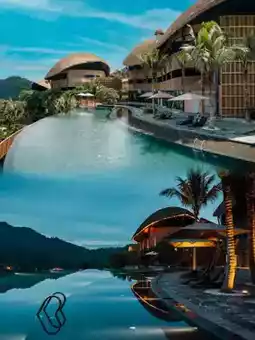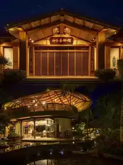 The most amazing thing about the hotel is that it is surrounded by mountains and waters, with lush forests on both sides. Looking from top to bottom, it feels like being in a fairyland on earth, with light mist and vast clouds. The scenery is simple and elegant. You can enjoy a private large tropical garden with two forests, go boating on the lake, watch the sunset from the top floor of the hotel, swim freely in the infinity pool, and when night falls, the entire starry sky seems to be moved into the swimming pool. Being here, the experience is really no less than that of Bali! The lights under the thatched house are warm and bright. When the lights are reflected in the lake, the stars echo the stars and the moon in the sky. This is the paradise on earth.