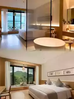 The hotel has a total of 64 rooms, all facing the rainforest or the mountain lake. The word "elegant" is permeated to the extreme in the accommodation experience, integrating Chinese holiday aesthetics with jade culture, bathing Buddha, and sandalwood can be seen everywhere. When you push the door and enter the room, you will be greeted by a fresh fragrance, a simple layout, elegant wood design and small but exquisite furnishings, all of which exude the traditional Chinese elegance and tenderness.