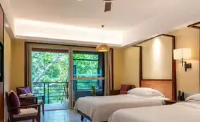 The hotel is located in the Qixianling Hot Spring Forest Park in Baoting, Hainan, between green mountains and beautiful waters, away from the hustle and bustle of the city. You can stroll among the green forests and green mountains, return to simplicity in nature, and enjoy the fun of life.