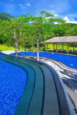 The hotel has stand-alone villas. We stayed in the main building of the hotel. We stayed in a garden-view room. The balcony is the hotel's garden. There is a hot spring pool on the balcony of each room. Soaking in the hot spring, looking up at the distant Qixianling. The clouds and mist are lingering, and the mountains are undulating. It seems like a painting carefully arranged by nature. There are male and female divisions here. The pool is surrounded by pebbles. The hot spring water flows gently. It is surrounded by lush woods. It seems to be in the embrace of nature. The hotel's breakfast is a buffet breakfast. There are many varieties. There are both Western and Chinese styles. It can also be made on the spot. It can satisfy the needs of both the elderly and children. There is also a free coffee machine in the lobby. Have a cup of coffee before leaving. It's another energetic day.