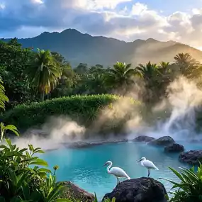 Tropical Rainforest Setting: Surrounded by a lush tropical rainforest, the hot springs area boasts fresh air and beautiful scenery, allowing visitors to immerse themselves in nature's charm while enjoying the springs. 💦