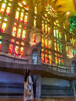 When you think of Barcelona, Spain, you think of the Sagrada Familia. The Sagrada Familia, a World Heritage Site, is an unfinished work by architect Antoni Gaudi. I went there because I wanted to see the construction in progress with my own eyes. It is just a symbol of Barcelona, and the area was crowded with tourists just by arriving. We made a reservation in advance on the official website to visit the inside of the cathedral. There are two types of tickets: a ticket to enter the cathedral only, and a ticket to enter the cathedral and climb the tower. There are two towers, the "Nativity Facade" and the "Passion Facade", and you can choose one of them. We purchased a ticket to climb the "Nativity Facade" and entered. First, we went inside the cathedral. We were greeted by a magnificent space covered with a high ceiling. The many columns made of marble and other materials are impressive. The colorful stained glass of red, orange, blue and green is also worth seeing. The color changes depending on the amount of light that shines in, so I kept looking up.