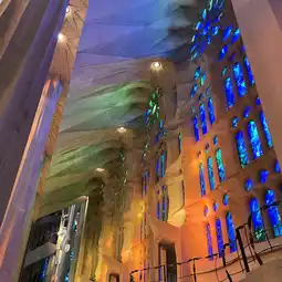 Pay attention to the surrounding columns. They resemble giant trees, with their tops spreading out like branches and foliage, reaching toward the ceiling. This structure is not just aesthetic—those “branches” actually support the vaulted ceiling. This solution allows the building to reach impressive heights without the external buttresses typical of medieval cathedrals. The combination of beauty and function is a defining element in Gaudí’s work.