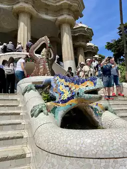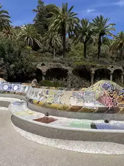 🏖️Environment/Facilities: Park Güell opened in 1922. It was listed as a UNESCO World Cultural Heritage in 1984. Another masterpiece by Gao Di. At the park entrance, you will find a colorful mosaic salamander welcoming everyone, and there is a fantasy house on each side of the entrance. Proud and interesting. In keeping with Gaudí's architectural style, mosaic tiles decorate the promenade benches and walls. The part going up the mountain is full of palm trees, stone bridges and stone walls, which are full of Mediterranean style.
