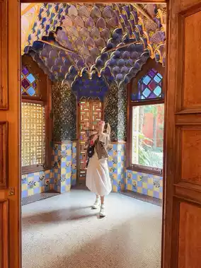 Gaudi's buildings are known for their curved buildings, but Casa Vicens is influenced by Islamic style and nature, and is characterized by its use of tiles and iron and few curves.