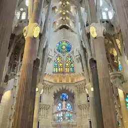 Inside the church, sunlight filters through colorful stained glass windows, casting mesmerizing beams of light. Gaudí's use of natural light and curved designs creates a breathtakingly sacred space that transcends language. Even non-religious visitors will be awed by the beauty of this architectural marvel.