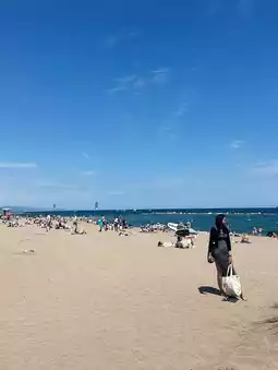 On a sunny afternoon we went to Barceloneta Beach, the beach is crowded but not crowded, you can walk, sunbathe, take beautiful photos📸.