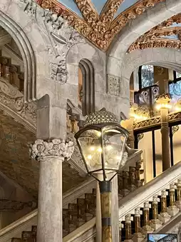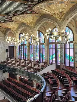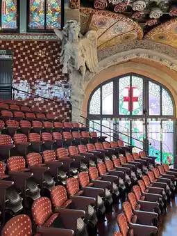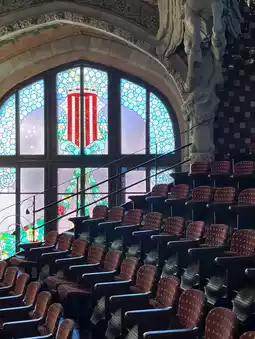 The Palau de la Música Catalana was named a UNESCO World Heritage Site in 1997. Every year, more than 500,000 people attend various music performances at the Palau de la Música Catalana. During this visit, I also saw many performance catalogs, and the performer flags hanging on the walls had Lang Lang's name on them. The entire building is very magnificent, combining a variety of elements. The columns in the concert hall are brightly colored, and looking up, you can also see the names of Wagner and Mozart.