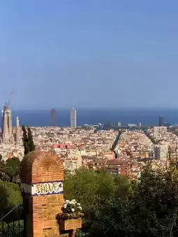After a leisurely stroll through Park Güell, I climbed to the observation deck near Casa Trias, and the view before me was truly breathtaking. With Gaudí's unique architecture and the green hills behind me, the endless expanse of Barcelona unfolded before my eyes.🏘
