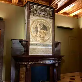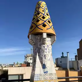 And on the rooftop, there are rows of chimneys decorated with colorful mosaic tiles, giving a glimpse into his later architecture. 🔍