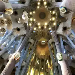 Gaudi was inspired by nature when creating the Sagrada Familia. The interior columns branch out like forest trees, the ceiling spreads like a canopy, and the stained-glass light creates a fantastical space.✨