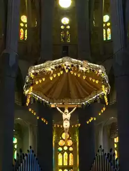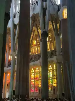 The first thing that caught my eye were the columns, reaching straight up into the sky. Gaudi designed these columns not just as simple architectural elements, but like trees in a forest. The columns branched out like branches as they ascended, supporting the ceiling, and the light streaming through them resembled sunlight filtering through the forest. The atmosphere inside the cathedral was not just solemn, but mysterious, as if we were standing in nature.