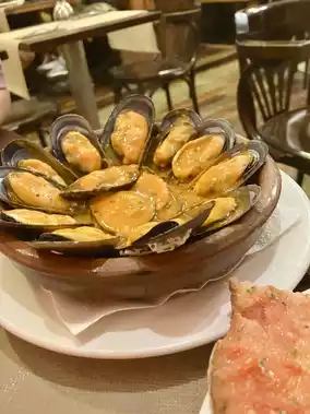 Because it's located close to the sea, the mussels and shrimp ajillo were also delicious.🦐