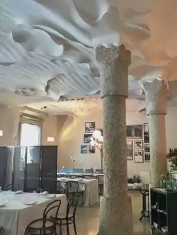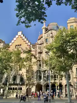 The first course of the Gaudi tour is Casa Bayot. Its exterior is so unique that you'll stop and look at it even if you don't know it.💛 The colorful tiles and the balcony are made of bone-shaped pillars, so it feels similar to the inside of the Sagrada Familia Cathedral. The tiles are made by reassembling broken tiles, which makes it look even more unique. And since Gaudi designed the building with the ocean as a motif, it somehow feels refreshing and reminds me of the Little Mermaid. 🧜🏻♀️ The interior is especially pretty, but I didn't go in because I wondered if I should pay the entrance fee. I regretted it later after seeing the photos..🥲 The interior is pretty, so I definitely recommend you go in and see it!!