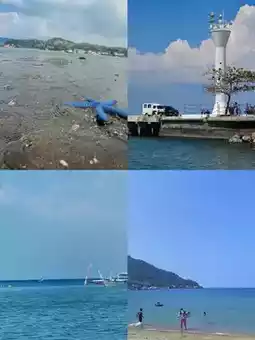 1. **Rocky Coast**: Crystal-clear seawater crashes against the hard rocks, creating white foam, and the sound of the waves is as crisp and pleasant as thunder.