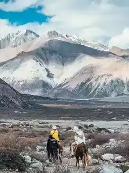 The end of the dirt road is not at the foot of the glacier. Next, you have to ride a horse or walk for a kilometer to get there. The cost of horse riding is 150 yuan/person round trip, and the horse lead will not urge tourists. But in fact, if you are accustomed to the altitude of about 4000 meters, you can also walk there, the road is relatively easy to walk.
