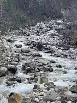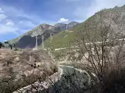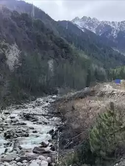 🚗 The road afterwards is relatively okay, with no signs of ice or landslides. The road follows the Sangqu River, and you can almost always catch a glimpse of the snowy mountains, which makes for a nice view. There is a spot where you can see the Zayü Grand Canyon. The water flow is not very large at this time of the season.
