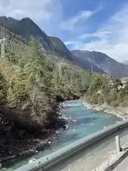 🚗 After coming out of the Renlongba Glacier, I hitched a ride on the roadside, and the driver was a delivery man named Tashi. Just after leaving the glacier, there is a mountain to cross, which is not very easy to drive on. Both the uphill and downhill slopes are steep, and the turns are sharp, so if you are driving yourself, you need to pay special attention to safety. The road just out of the glacier has some potholes, so you have to be careful.