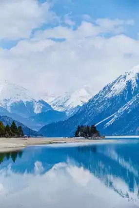 Here, the snow-capped peaks of the Himalayas overlook the world in their ancient posture, the lake water awakens in the morning mist, rippling like emeralds; clouds drift across the ridges, writing ever-changing verses on the lake's surface.