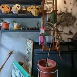 A quaint coffee spot in batam with limited indoor seating and an extended outdoor area. I managed to secure a counter seat, which offered a unique vantage point. The food selection is limited, featuring a few sandwiches and baked goods. I opted for their burger set.